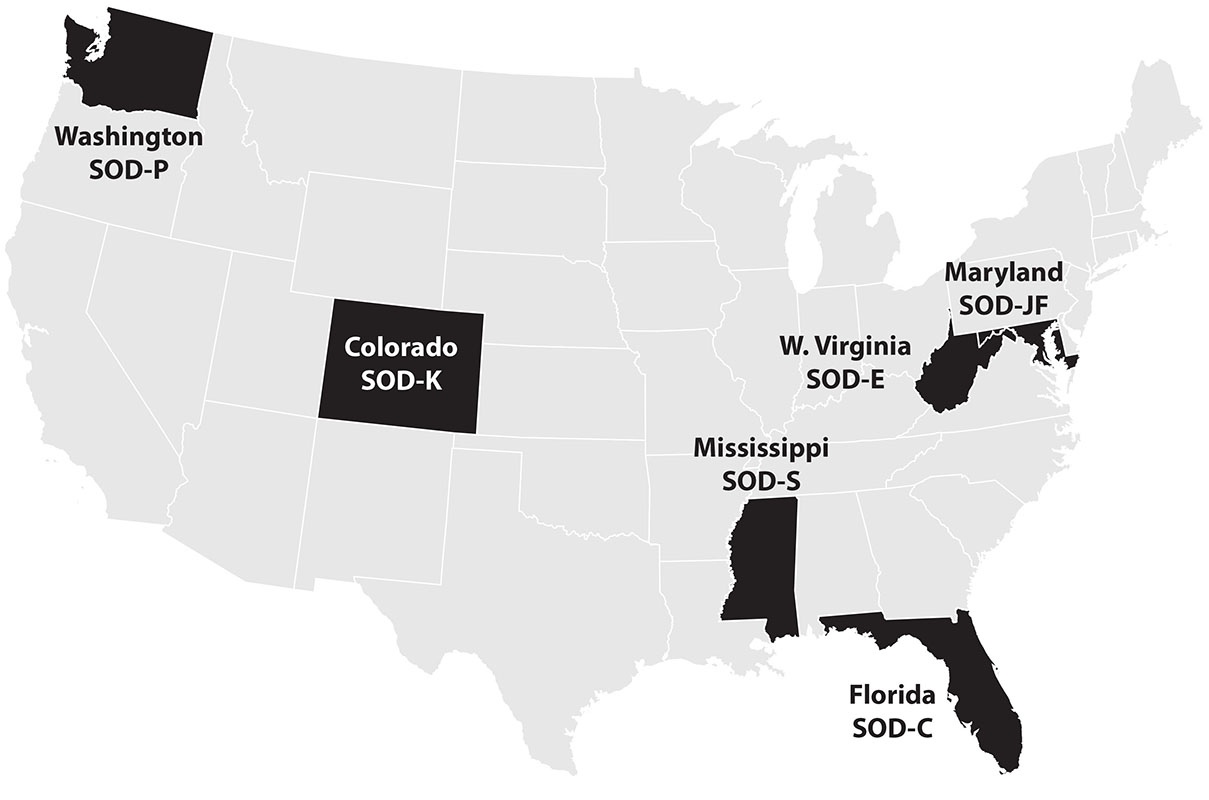 Home states of the original six National Guard SODs.